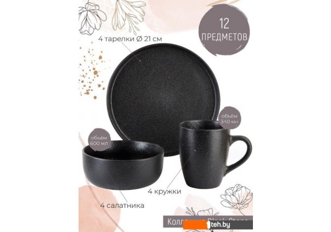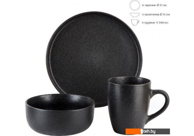 Информация | Коллекция Black Stone естественная структура камня, в сочетании с выразительной матовой поверхностью. Широкий выбор изделий стильного, черного цвета. Посуда выполнена из керамики. Можно использовать в посудомоечной машине и микроволновой печи._x000D_ Размер кружки: 12х9х10.5 см._x000D_ Размер товара в упаковке: 32х24х25 см._x000D_ Вид упаковки: индивидуальная брендированная коробка._x000D_ Тарелки данного столового керамического набора на 4 персоны можно использовать как: десертные, пирожковые, обеденные, столовые и подстановочные. Салатники же могут применяться как: пиалы, бульонницы, миски, супницы, тарелки для супа. Кружки можно использовать как: чайная чашка, кофейная чашка, фарфоровая чашка. |
