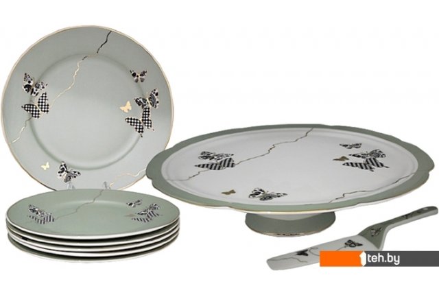 | Состав набора | 6 десертных тарелок, подставка для торта, лопатка |
