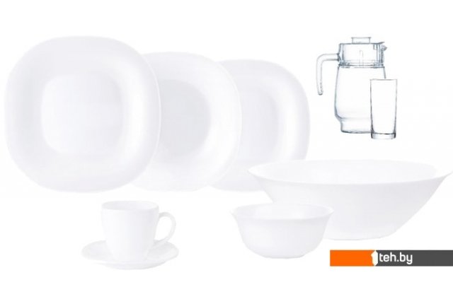 | Информация | Тарелка обеденная (25 см) — 6 шт.Тарелка глубокая (22 см) — 6 шт.Тарелка десертная (19 см) — 6 шт.Блюдо овальное (35 см) — 1 шт.Салатник маленький (12 см) — 6 шт.Салатник большой (27 см) — 1 шт.Чашка (220 мл) — 6 шт.Блюдце (12 см) — 6 шт.Графин с крышкой (1,6 л) — 2 предметаСтаканы высокие (270 мл) — 6 шт. |
