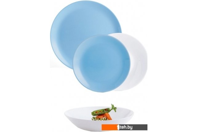 | Информация | тарелка подставная 25 см (голубая) - 6 шт.,тарелка глубокая 20 см (белая) - 6 шт.,тарелка десертная 19 см (голубая) - 6 шт. |