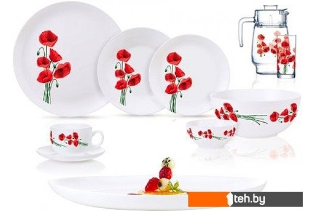 | Информация | Уважаемые покупатели!_x000D_ Обратите внимание! Еда в комплект не входит._x000D_ _x000D_ Размеры и объемы посуды:_x000D_ Тарелка десертная 19 см_x000D_ Тарелка обеденная 27 см_x000D_ Тарелка глубокая 20 см, 780 мл_x000D_ Блюдо овальное 33 см_x000D_ Салатник большой 21 см_x000D_ Салатник малый 12 см_x000D_ Чашка 220 мл_x000D_ Блюдце 14 см_x000D_ Кувшин с крышкой 1.6 л_x000D_ Стакан высокий 270 мл |