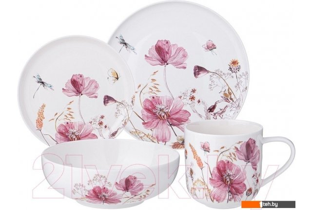 | Состав набора | кружка (4 шт.), тарелка закусочная (десертная) (4 шт.), тарелка столовая глубокая (4 шт.), тарелка столовая обеденная (4 шт.) |