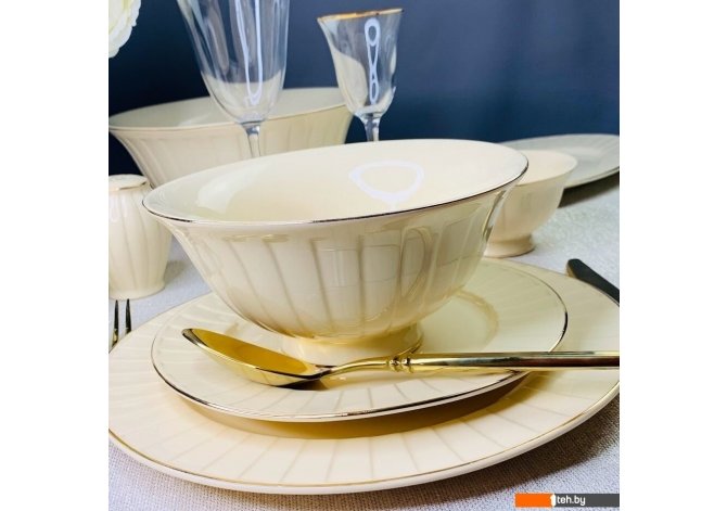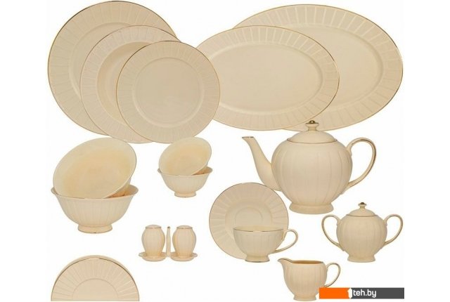 | Состав набора | молочник (1 шт.), чайник (1 шт.), крышка (2 шт.), сахарница (1 шт.), блюдце (12 шт.), чашка (12 шт.), салфетница (2 шт.), солонка (1 шт.), перечница (1 шт.), подставка (1 шт.), салатник (14 шт.), блюдо (4 шт.), тарелка столовая обеденная (12 шт.), суповая тарелка (12 шт.), тарелка закусочная (десертная) (12 шт.) |