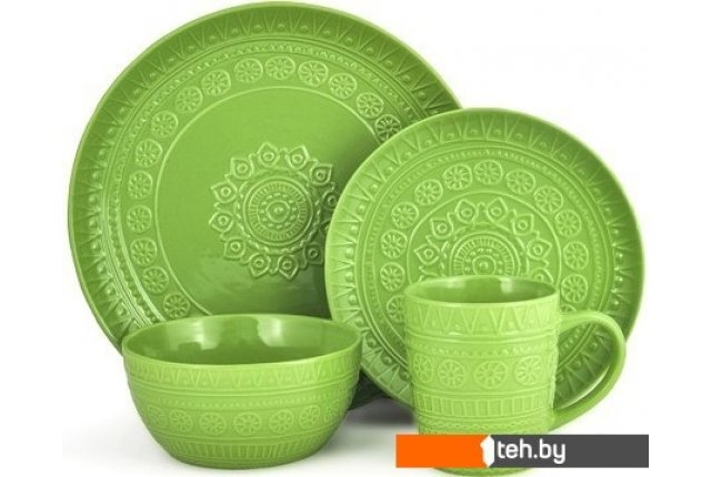 | Информация | 6281 Набор MOTIF из 16 пр. (4 кружки 440млl, 4 тарелки 20,8 см, 4 тарелки 27,8 см, 4 пиалы 15,2х7,3см /660мл) цвет зеленый (керамика) |
