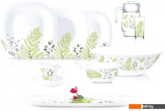 | Состав набора | блюдо (1 шт.), блюдце (6 шт.), крышка (1 шт.), кувшин (1 шт.), салатник (7 шт.), стакан (6 шт.), тарелка закусочная (десертная) (6 шт.), тарелка столовая глубокая (6 шт.), чашка (6 шт.), тарелка столовая обеденная (6 шт.) |