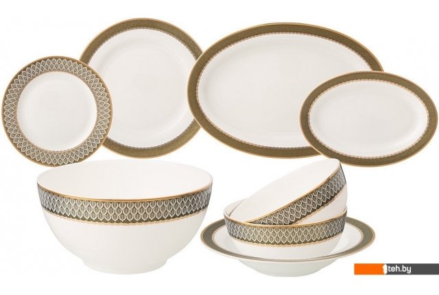 | Состав набора | блюдо (2 шт.), салатник (3 шт.), тарелка закусочная (десертная) (6 шт.), тарелка столовая глубокая (6 шт.), тарелка столовая обеденная (6 шт.) |