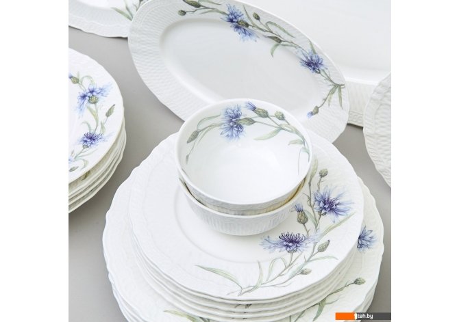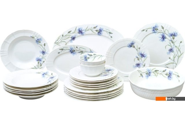 | Информация | - Уникальная коллекция лёгкого, тонкого и прочного фарфора, которая привлекает внимание своей изящной рельефной сеткой и красивым кантом. Сверкающая глазурь добавляет элегантности каждому изделию. - Эксклюзивный дизайн полевого василька небесного цвета создает романтическое настроение и придаёт особый шарм. Оригинальное размещение рисунка на рельефной части изделий добавляет игре света и объёма. - Широкий ассортимент позволяет легко сервировать обеденный стол или организовать вечернее чаепитие – идеальный выбор для любых случаев. В коллекции представлены чайный сервиз, чайные пары удобных объёмов и десертные тарелки. - Стильная цветная коробка делает этот набор прекрасным подарком. Все изделия сертифицированы и безопасны для контакта с пищевыми продуктами. - Можно смело использовать в микроволновой печи и мыть в посудомоечной машине. |
