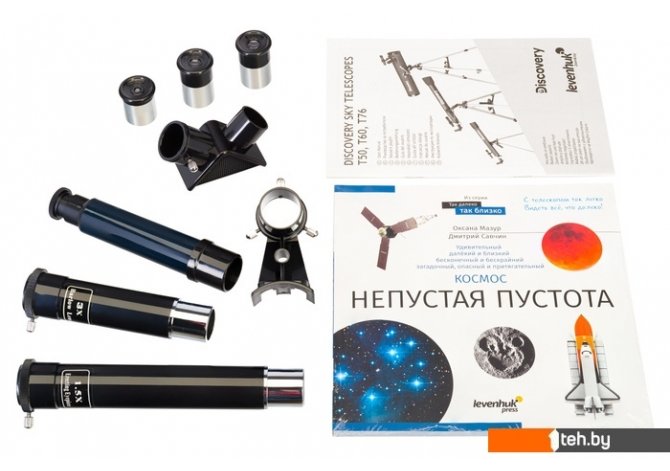 | Информация | Телескоп Discovery Sky T60 – прекрасный выбор в качестве первого в жизни телескопа. Он достаточно простой по устройству, комфортен в управлении и комплектуется всем необходимым для наблюдений. Не нужно ничего докупать или долго осваивать – к изучению космоса можно будет приступить незамедлительно. Телескоп упакован в красочную брендированную коробку и дополнен познавательной книгой о космосе, рассчитанной на широкий круг читателей. |