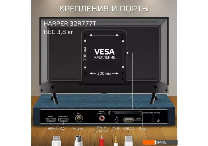 Фотографии, описание и технические характеристики модели телевизора HARPER 32R777T взяты из открытых источников, официального сайта производителя или представительства HARPER в Республике Беларусь.