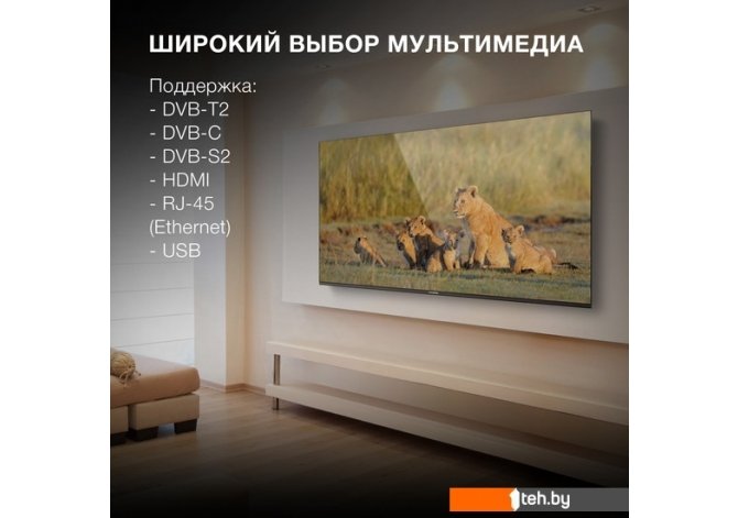 | Информация | Hyundai H-LED50BU7006 – это не просто ультратонкий телевизор, но ещё и полноценный медиапроигрыватель с богатым выбором дополнительных функций. Современная операционная система Android TV 11, на платформе которой работает прибор, делает возможным простую и быструю навигацию по стриминговым площадкам и воспроизведение видео в потоковом формате. Чтобы обеспечить стабильное соединение с Интернетом, устройство использует Wi-Fi или вход Ethernet для классического кабеля. Экран данной модели имеет оптимальные характеристики как для просмотра качественного кино, так и для погружения в актуальные видеоигры. Он показывает изображение с разрешением до 3840х2160 пикселей, что соответствует формату 4K Ultra HD. Частота обновления дисплея составляет 60 Гц – это делает просмотр динамичных спортивных матчей и другие доступные развлечения плавными и богатыми на детали. Углы обзора телевизора составляют 178 градусов по обоим направлениям и усиливают эффект погружения в происходящее. Для синхронизации со сторонней техникой Hyundai H-LED50BU7006 может применять беспроводной протокол Bluetooth и порты HDMI. Последний позволяет превратить телевизор в полноценный внешний монитор со встроенной стереоакустикой мощностью 40 Вт. Кроме того, для воспроизведения мультимедийного контента с флеш-накопителей устройство использует USB-разъёмы. Всё это значительно расширяет вариативность Hyundai H-LED50BU7006. Качественный приём телевизионного сигнала в приборе обеспечивают сразу четыре ТВ-тюнера различных разновидностей. |