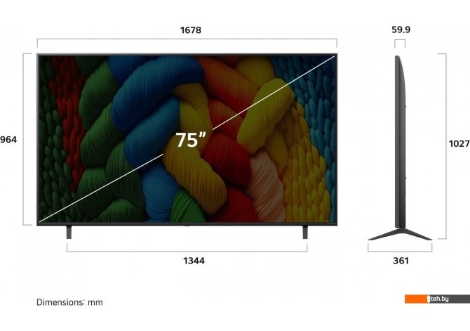 Фотографии, описание и технические характеристики модели телевизора LG NanoCell AI NANO81 75NANO81A6A взяты из открытых источников, официального сайта производителя или представительства LG в Республике Беларусь.