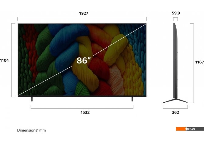 Фотографии, описание и технические характеристики модели телевизора LG NanoCell AI NANO81 86NANO81A6A взяты из открытых источников, официального сайта производителя или представительства LG в Республике Беларусь.