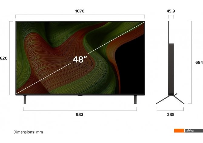 Фотографии, описание и технические характеристики модели телевизора LG OLED AI B5 OLED48B5RLA взяты из открытых источников, официального сайта производителя или представительства LG в Республике Беларусь.