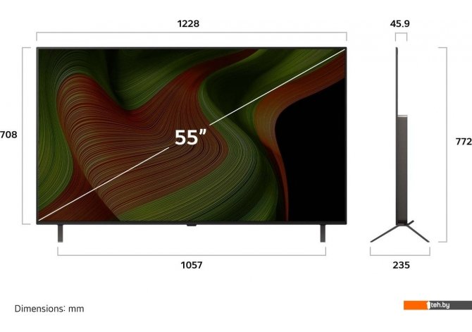 Фотографии, описание и технические характеристики модели телевизора LG OLED AI B5 OLED55B5RLA взяты из открытых источников, официального сайта производителя или представительства LG в Республике Беларусь.