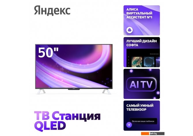 | Информация | - Яндекс ТВ Станция QLED второго поколения. Умный телевизор с QLED-экраном, с которым ваши впечатления от кинопросмотра будут ещё ярче. - Найдётся всё Ищите и смотрите любимые фильмы, сериалы, телеканалы, спортивные трансляции прямо с главного экрана — Алиса найдёт всё, что попросите в онлайн-кинотеатрах, видеосервисах или просто в интернете. - Алиса с нейросетью YandexGPT 4 превращает ТВ Станцию в самый умный телевизор с голосовым управлением и множеством возможностей. От интеллектуального улучшения изображения до интуитивного общения и взаимодействия. - Благодаря смарт-функциям общаться с виртуальным ассистентом можно так же естественно, как с человеком. Алиса понимает даже те команды, которым её не обучали заранее. А с технологией AI Picture Quality искусственный интеллект сам подстраивает изображение под желаемый уровень цветопередачи, делая кадры ярче и сочнее. Квантовые точки QLED-экрана передают более 1 млрд цветовых оттенков, создавая реалистичное, чёткое и объёмное изображение. Технологии HDR и МЕМС позволяют усилить детализацию кадров и придать плавности динамичным сценам. А чтобы цветопередача телевизора была не только выразительной, но и максимально точной, инженеры Яндекса применили технологию Yandex PQ. - Четыре динамика мощностью 34 Вт настроены с помощью технологии Yandex AQ. Широкий частотный диапазон и глубокие басы создают объёмное звучание, усиливая впечатления при просмотре фильмов и прослушивании музыки. |