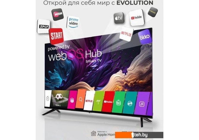 | Информация | Откройте новые горизонты просмотра с телевизором SmartTV EVOLUTION 43”! На 43-дюймовом экране с разрешением Ultra HD (4K, 3840*2160), вы увидите все детали изображения с повышенной четкостью. Благодаря поддержке самых современных форматов видео каждый кадр выглядит невероятно реалистично и насыщено. Технология D-LED обеспечивает яркость картинки и широкие углы обзора для комфортного просмотра из любой точки комнаты. А безрамочный дизайн делает удовольствие от просмотра безграничным. Интегрированная операционная система WebOS TV (версия 6.0), разработанная LG, обеспечивает непревзойденное удобство использования, доступ ко всем самым актуальным приложениям и стриминговым сервисам вроде Netflix, YouTube, Prime Video, Кинопоиск, Иви, Оkko, Zala и многим другим. Интеллектуальный пульт Magic Remote и возможность голосового управления делают навигацию по меню быстрой и удобной. С помощью технологии искусственного интеллекта ThinQ ваш телевизор будет учиться и адаптироваться к вашим предпочтениям, предлагая контент, который вы по-настоящему любите. А с поддержкой Apple Airplay и Apple Homekit вы сможете без труда интегрировать ваш телевизор в экосистему Apple, стримить контент с устройств Apple и управлять телевизором с помощью вашего iPhone или iPad. Встроенные мощные стереодинамики и поддержка Dolby Audio гарантируют качественный и чистый звук, подчеркивающий каждую деталь происходящего на экране. 3 порта HDMI, 2 USB-выхода и порт LAN дают широкие возможности для подключения дополнительного оборудования. Беспроводное подключение к интернету обеспечивается по разным стандартам Wi-Fi от более старых до самых современных, что обеспечивает стабильное беспроводное подключение. Удобная подставка в комплекте позволяет разместить телевизор на любой поверхности, а с настенным креплением VESA 200x200 вы можете повесить телевизор на стену. SmartTV EVOLUTION 43” – это идеальное решение для тех, кто хочет получить максимум от своего телевизора и по-настоящему окунуться в мир высококачественного контента. |