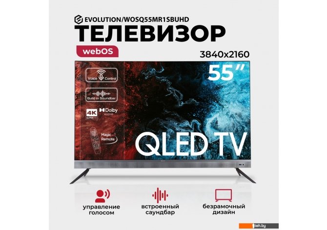 | Информация | - Откройте новые горизонты просмотра с телевизором QLED EVOLUTION WOSQ55MR1SBUHD SmartTV! На 55-дюймовом экране с разрешением Ultra HD (4K, 3840*2160), вы увидите все детали изображения с повышенной четкостью. Благодаря поддержке самых современных форматов видео каждый кадр выглядит невероятно реалистично и насыщено. Технология QLED обеспечивает яркость картинки и широкие углы обзора для комфортного просмотра из любой точки комнаты. А безрамочный дизайн делает удовольствие от просмотра безграничным. Интегрированная операционная система WebOS TV (версия 6.0), разработанная LG, обеспечивает непревзойденное удобство использования, доступ ко всем самым актуальным приложениям и стриминговым сервисам вроде Netflix, YouTube, Prime Video, Кинопоиск, Иви, Оkko, Zala и многим другим. Интеллектуальный пульт Magic Remote и возможность голосового управления делают навигацию по меню быстрой и удобной. С помощью технологии искусственного интеллекта ThinQ ваш телевизор будет учиться и адаптироваться к вашим предпочтениям, предлагая контент, который вы по-настоящему любите. А с поддержкой Apple Airplay и Apple Homekit вы сможете без труда интегрировать ваш телевизор в экосистему Apple, стримить контент с устройств Apple и управлять телевизором с помощью вашего iPhone или iPad. Встроенный саундбар, мощные стереодинамики и поддержка Dolby Audio гарантируют качественный и чистый звук, подчеркивающий каждую деталь происходящего на экране. 3 порта HDMI, 2 USB-выхода и порт LAN дают широкие возможности для подключения дополнительного оборудования. Беспроводное подключение к интернету обеспечивается по разным стандартам Wi-Fi от более старых до самых современных, что обеспечивает стабильное беспроводное подключение. Удобная подставка в комплекте позволяет разместить телевизор на любой поверхности, а с настенным креплением VESA 200x400 вы можете повесить телевизор на стену. Телевизор QLED EVOLUTION – это идеальное решение для тех, кто хочет получить максимум от своего телевизора и по-настоящему окунуться в мир высококачественного контента. - |