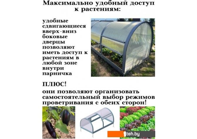 | Информация | ? Многофункциональный мини-парник Красавик на пластиковой грядке в основании - настоящее украшение Вашего приусадебного участка! ? Конструкция мини-парника способствует раннему прогреву почвы и сохранению тепла внутри него во время ночных похолоданий, что при правильном чередовании культур дает возможность получения 2–3 урожаев за сезон. ? Широкий спектр пряных трав, салатов и корнеплодов, рассаду, детерминантные (низкорослые) сорта томатов, перцев и баклажанов, ягоды, цветы - все это можно выращивать в таком парнике. ? Сдвижные стенки с обеих сторон мини-парника позволяют установить практически любой режим проветривания и иметь доступ к растениям в любой зоне внутри мини-парника. ? Детали каркаса изготавливаются из стальной оцинкованной трубы сечением 20?20 мм, жестко соединяются между собой Т-образными стальными соединителями типа «краб». Пластиковые борта грядки жестко фиксируются к стальному каркасу посредством прочных толстостенных соединителей из ПВХ. ?? Срок службы деталей из ПВХ составляет свыше 20 лет и сопоставим со сроком службы пластиковых окон. ? Кроме выращивания растений, мини-парник «Красавік» может использоваться в качестве уличного укрытия для инвентаря или как сушильная камера. ? В солнечную погоду воздух внутри сушильной камеры прогревается до температуры, на 15–25 градусов выше температуры наружного воздуха и длительное время остается теплым после захода солнца. Такая сушильная камера с успехом может применяться для сушки и вяления овощей, фруктов, ягод, орехов, грибов и рыбы. |
