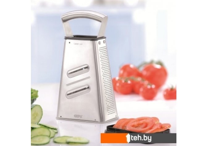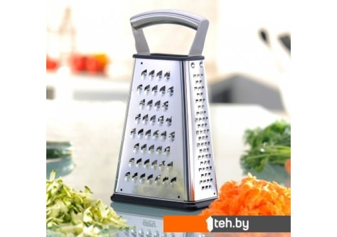 | Информация | Благодаря специальной технологии лазерной заточки, терка имеет очень острые лезвия, которые которые гарантируют превосходный результат. Основание, выполненное из специального пластика, не скользит и не царапает посуду. Имеет контейнер для сбора натертых продуктов. Металлическая ручка обеспечивает удобный хват при использовании.Четыре стороны терки обеспечивают нарезку разными способами: слайсер ломтиками, крупная терка, мелкая терка, терка для крошки. |