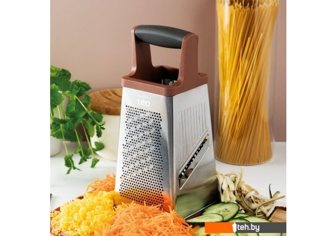 | Информация | Изготовлена из высококачественной нержавеющей стали, имеет лазерную заточку (острую и долговечную), позволяющую натирать овощи в обоих направлениях. Ручка изготовлена из полипропилена и силикона, благодаря чему гарантирует безопасную работу. Подходит для мытья в посудомоечной машине.Варианты нарезки/измельчения: слайсер, крупная терка, мелкая терка, терка крошкой. |