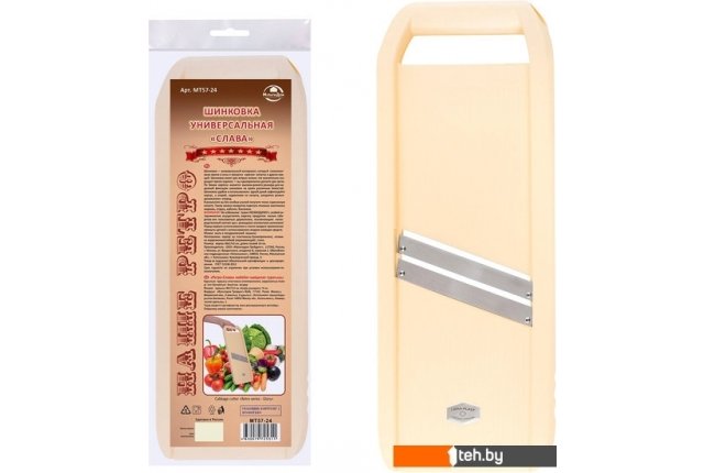 | Информация | Шинковка универсальный инструмент, который сэкономит ваше время и силы в процессе нарезки капусты и других овощей. Шинковка имеет два острых лезвия, что значительно сокращает время нарезки, вы одновременно делаете два среза. По бокам корпуса имеются выемки разного размера для надежной фиксации шинковки на краях различных ёмкостей. Шинковка удобна в использовании: одной рукой зафиксируйте корпус, а второй, надавливая на капусту, аккуратно режьте движениями вперед. ВНИМАНИЕ! Во избежание травм НЕОБХОДИМО с особой осторожностью осуществлять нарезку продуктов малых габаритов или пользоваться держателем, исключающим непосредственный контакт рук с режущими элементами шинковки! Перед первым использованием и после каждого применения промыть щеткой с использованием жидких моющих средств. |