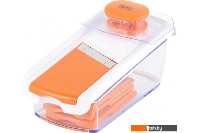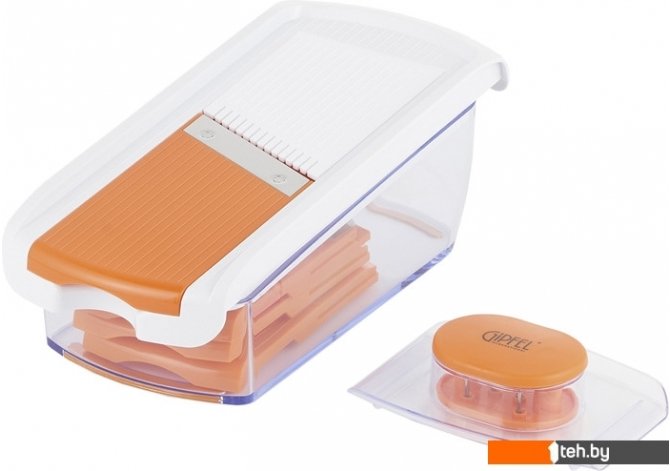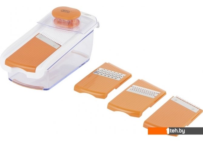 | Информация | ? Простая и безопасная в использовании овощерезка с 4 насадками. ? Подходит для всех видов овощей и фруктов, удобно держать в руке благодаря ручке. ? Идеально подходит для быстрого нарезания овощей для супов, гарниров и салатов. ? Терка-овощерезка белого цвета с оранжевыми вставками, с прозрачным контейнером для контроля количества продукта. ? Экономит время, легка в использовании и упакована в фирменную коробку. ?? Можно мыть в посудомоечной машине для удобства. |