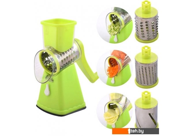 | Информация | Многофункциональная терка роторная — мультирезка поможет вручную измельчить продукты до нужного состояния. В комплекте 3 типа насадок: мелкая — для сыра, приготовления шоколадной крошки, панировочных сухарей; крупная — для нарезки соломкой; шинковка — нарезает ломтями картофель, морковь, яблоки и другие продукты. Прибор используется для овощей, фруктов, орехов и сыра, терка незаменима во время приготовления супов, вторых блюд, салатов и кондитерских изделий. Терка роторная благодаря ручному приводу работает практически бесшумно, в отличие от аналогичных электроприборов. После использования необходимо разобрать терку, промыть все части и просушить. Изготовлено: корпус из пластмассы (полипропилен), насадки из коррозионностойкой (нержавеющей) стали. |