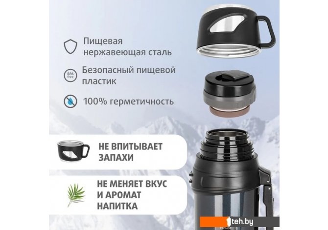 | Информация | ? Термос Тонар T-KD-9010-2 (2л, синий) оснащен двойными стенками с вакуумной изоляцией, сохраняя напитки горячими или холодными длительное время. ? Изготовлен из нержавеющей стали с защитным покрытием, отлично сохраняет температуру и свежесть напитка. ? Герметичная откидная крышка с кнопкой-предохранителем и дополнительная теплоизоляция внутри пробки исключают случайное проливание. |