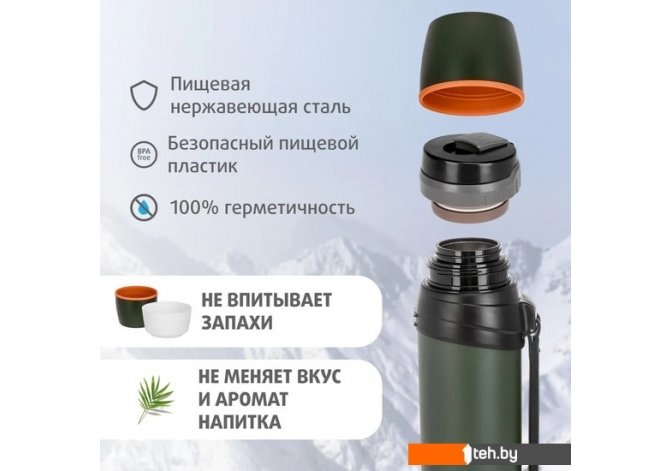 | Информация | ? Термос Тонар T-KD-938-2 (2л, хаки) с двойными стенками и вакуумной изоляцией сохраняет напитки горячими или холодными длительное время. ? Изготовлен из нержавеющей стали с защитным покрытием для сохранения свежести и оригинального вкуса напитка. ? Герметичная откидная крышка с кнопкой-предохранителем и дополнительная теплоизоляция внутри пробки исключают случайное проливание. |