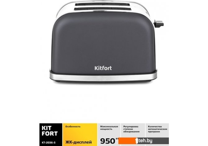 Фотографии, описание и технические характеристики модели тостера Kitfort KT-2036-5 (графит) взяты из открытых источников, официального сайта производителя или представительства Kitfort в Республике Беларусь.