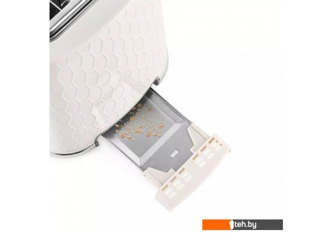 | Информация | Горячие и хрустящие тосты каждое утро! Тостер Kitfort КТ-6075 создан для любителей ароматного и хрустящего, поджаренного хлеба. Прибор позволяет быстро поджарить тосты для приготовления горячих бутербродов, сэндвичей, а также бейглы, хлебцы для закусок, салатов и других блюд. Простое управление Тостер оснащён регулятором степени обжаривания. «Подогрев» служит для разогрева уже готовых тостов, если они остыли. «Разморозка» позволяет приготовить тосты из замороженного хлеба. «Отмена» - прибор выключается, а тосты поднимаются наверх. Автоматический выброс готовых ломтиков Загруженные тосты автоматически центрируются, чтобы их поджарка с двух сторон была равномерной независимо от толщины куска. После приготовления, устройство отключается, а тосты поднимаются вверх, чтобы их было удобнее извлекать, без риска обжечься. С хрустящей корочкой! Благодаря 7 степеням обжаривания вы можете приготовить горячие тосты на любой вкус и из любых видов хлеба. Особый вкус и цвет тостов получаются такими благодаря карамелизации сахара, содержащегося в муке, в процессе приготовления. Съёмный поддон для крошек В нижней части корпуса тостера расположен съёмный поддон для сбора крошек. Просто выдвиньте его и выбросите скопившиеся крошки, а остатки протрите салфеткой. Креативный дизайн! Тостер Kitfort КТ-6075 порадует вас не только приготовленными хрустящими тостами, но и своим красивым дизайном! Тостер выполнен в бежевом цвете, а на его корпусе сделан узор в виде пчелиных сот. Вы можете приготовить сразу 1 или 2 тоста одновременно. Без лишних проводов! На дне корпуса тостера имеется отсек для хранения шнура, в который можно смотать излишки шнура электропитания, чтобы он не мешал на столе. |
