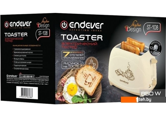 Фотографии, описание и технические характеристики модели тостера Endever Skyline ST-108 взяты из открытых источников, официального сайта производителя или представительства Endever в Республике Беларусь.