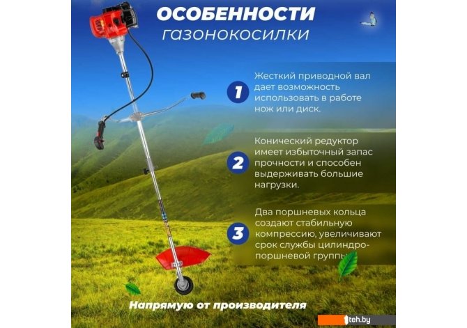 Аксессуары | - Двигатель двухтактный бензиновый - 1 шт; - Вал мотокосы с трубой - 1 шт; - Триммерная катушка - 1 шт; - Нож трёхлопастной - 1 шт; - Кожух защитный с винтами крепления - 1 шт; - Ремень плечевой - 1 шт. (двухплечный); - Комплект регулировочных инструментов и принадлежностей - 1 компл; - Дозатор топливной смеси - 1 шт; - Ручка левая - 1 шт; - Ручка правая - 1 шт; - Упаковка - 1 шт; - Руководство пользователя - 1 шт; |