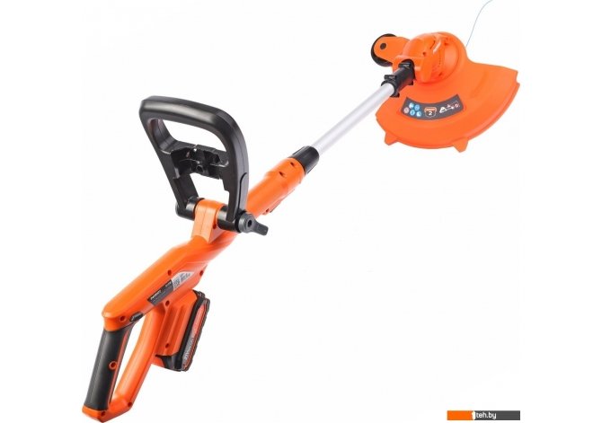 | Комплектация | - Триммер в сборе; - Рукоятка; - Защитный кожух; - Скоба защиты растений; - Набор для сборки и монтажа; - Фиксатор рукоятки; - Катушка с леской; - Инструкция; - Аккумулятор. |