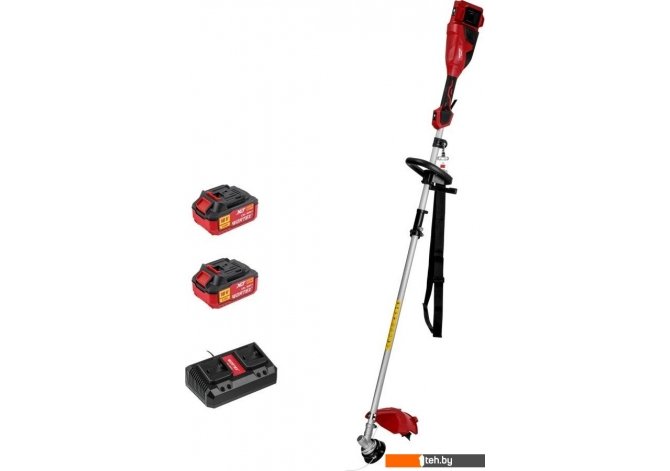 | Комплектация | - Защитный кожух; - Дополнительная рукоятка; - Винт – 6 шт.; - Гайка – 4 шт.; - Головка триммерная с катушкой и леской; - Нож; - Гаечный ключ; - Шестигранный ключ; - Фланец – 3 шт.; - Плечевой ремень; - Руководство по эксплуатации; - Аккумулятор CBL 1840-1, 4 А*ч – 2 шт.; - Зарядное устройство FC 2115-2, 2 А – 1 шт.; |