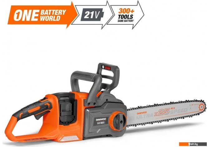 | Информация | - 21В Li-ion единая платформа Цепная пила совместима со всеми аккумуляторными инструментами и батареями DAEWOO линейки 21В. - Бесщеточный электродвигатель Обладает высокой мощностью, развивает большие обороты и имеет длительный срок службы, при этом потребляя меньше энергии по сравнению с щеточными аналогами. - Высокая скорость цепи 25 м/с Максимальная скорость цепи 25 м/с позволяет эффективно распиливать большие деревья на 15% быстрее, чем бензиновая пила с аналогичной длиной шины. - Электронная панель управления Панель управления на корпусе пилы дает возможность выбирать режим работы и контролировать уровень заряда каждого аккумулятора отдельно. - Три режима работы «Авто» - автоматическое изменение оборотов в зависимости от нагрузки; «1» - скорость цепи 15 м/с и обороты 8100 об/мин; «2» - TURBO режим, достигающий максимальной скорости цепи 25 м/с при 14 000 об/мин. - Система SDS Безинструментальное натяжение цепи позволяет натянуть цепь одной рукой без использования дополнительных инструментов. - Ведущая звездочка из металла Металлическая звездочка обеспечивает долговечность и надежность работы привода электропилы. - Система автоматической смазки цепи Гарантирует принудительную подачу масла на цепь, что снижает трение о шину и значительно увеличивает срок службы электропилы. - Моментальная остановка цепи Обеспечивает мгновенную остановку цепи для безопасного использования. |