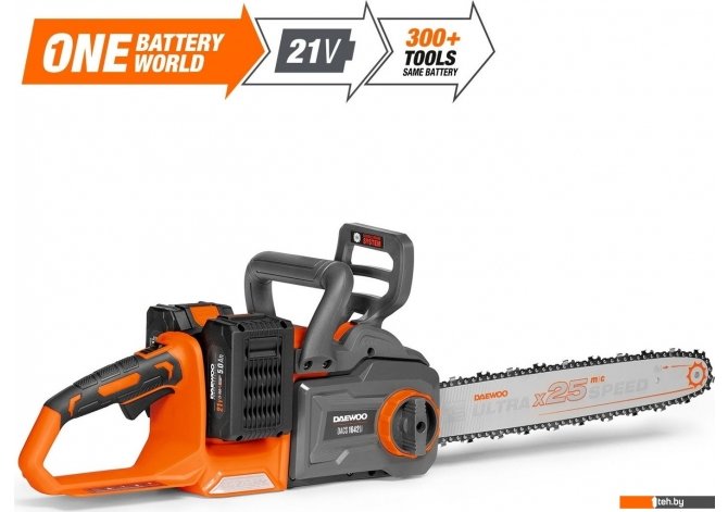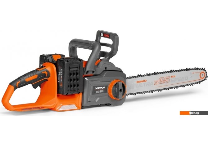 | Информация | - 21В Li-ion единая платформа Цепная пила совместима со всеми аккумуляторными инструментами и батареями DAEWOO линейки 21В. - Бесщеточный электродвигатель Обладает повышенной мощностью, развивает высокие обороты и имеет долгий срок службы при меньшем потреблении энергии по сравнению с щеточными аналогами. - Высокая скорость цепи 25 м/с Максимальная скорость цепи 25 м/с позволяет легко справляться с распилом больших деревьев на 15% быстрее, чем бензиновая пила с аналогичной длиной шины. - Электронная панель управления Панель управления на корпусе пилы позволяет выбирать режим работы и контролировать уровень заряда каждого аккумулятора отдельно. - Три режима работы «Авто» - автоматическое изменение оборотов в зависимости от нагрузки; «1» - скорость цепи 15 м/с и обороты 8100 об/мин; «2» - TURBO режим, достигающий максимальной скорости цепи 25 м/с при 14 000 об/мин. - Система SDS Безинструментальное натяжение цепи позволяет натянуть цепь одной рукой без использования дополнительных инструментов. - Ведущая звездочка из металла Металлическая ведущая звездочка обеспечивает долговечность и надежность работы привода электропилы. - Система автоматической смазки цепи Обеспечивает принудительную подачу масла на цепь для снижения трения о шину, что значительно увеличивает ресурс работы электропилы. - Моментальная остановка цепи Гарантирует мгновенную остановку цепи для безопасного использования. - Полный комплект В комплект входят два аккумулятора 21В/5.0 Ач и зарядное устройство 5.0 А, что позволяет сразу приступить к работе. |
