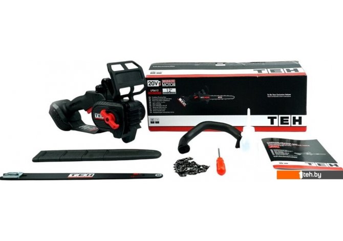 | Комплект поставки | - Аккумуляторная цепная пила; - Дополнительная рукоятка; - Направляющая шина; - Защитный кожух шины; - Цепь; - Отвертка PH2; - Набор крепежа; - Емкость для масла; - Руководство по эксплуатации; - Упаковка (картонная коробка). |