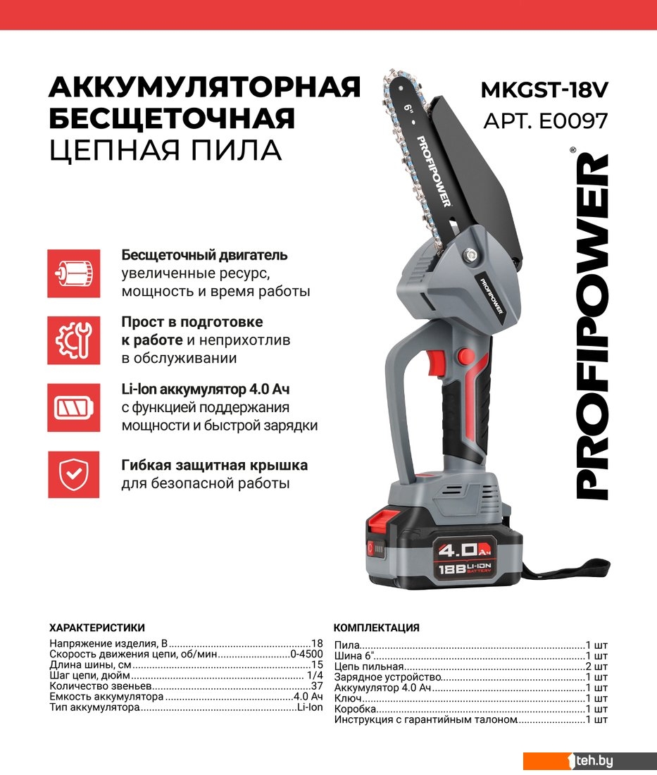 Цепные электро- и бензопилы Profipower MKGST-18V (с 1-им АКБ)