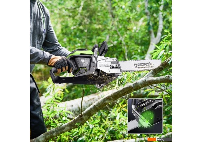 | Информация | -Ключевые характеристики Аккумуляторная цепная пила профессионального класса с мощностью 3.6 кВт и длиной шины 45 см предназначена для валки и раскряжевки деревьев, а также тяжелых садовых работ. Оснащена скоростью цепи 30 м/с, шагом 3/8 дюйма и шириной паза 1.3 мм, что обеспечивает высокую производительность и точность реза. -Преимущества и отличия Главные преимущества модели - бесщеточный двигатель, увеличивающий срок службы и надежность, а также интеллектуальная система управления, регулирующая работу инструмента и подачу масла в зависимости от условий эксплуатации. Металлический корпус и усиленные элементы конструкции гарантируют долговечность и устойчивость к нагрузкам. -Практичность Пила легко запускается одной кнопкой, обладает низким уровнем шума и вибрации, не требует сложного обслуживания двигателя. На дисплее отображаются индикаторы уровня масла, ошибки и максимальной мощности. Масляный насос с регулировкой подачи масла позволяет адаптироваться к разным типам древесины и погодным условиям. -Уникальность Модель выделяется инновационной системой Greenworks Intelligent Power для контроля батареи и инструмента, металлическим масляным баком и фронтальной частью корпуса, а также защитными механизмами:щитком с механическим тормозом цепи, металлическим уловителем и курковым выключателем от случайного пуска. |
