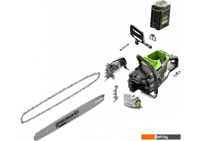 | Комплект поставки | аккумуляторная цепная пила Greenworks OCS800; пильная шина; пильная цепь; защитный кожух цепи; ключ для замены/натяжения цепи; руководство по эксплуатации; гарантийный талон |