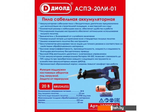 Фотографии, описание и технические характеристики модели ДИОЛД АСПЭ-20ЛИ-01 (без АКБ) взяты из открытых источников, официального сайта производителя или представительства ДИОЛД в Республике Беларусь.