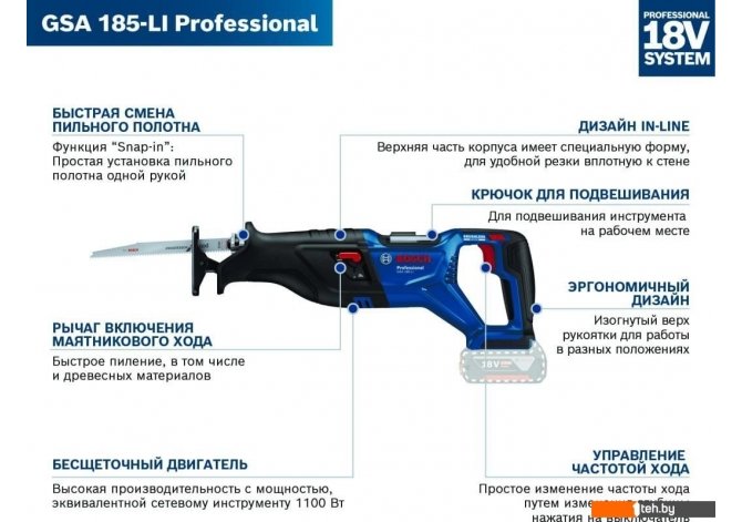Фотографии, описание и технические характеристики модели Bosch GSA 185-LI Professional 06016C0020 (без АКБ) взяты из открытых источников, официального сайта производителя или представительства Bosch в Республике Беларусь.