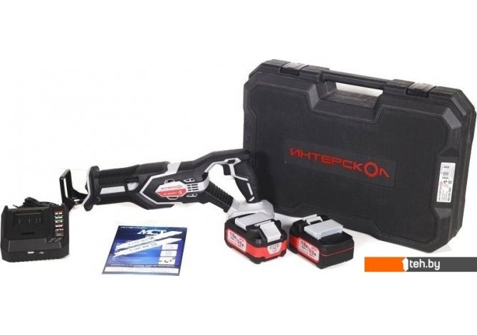 | Комплектация | - Ножовочная (сабельная) пила; - АКБ АПИ 18/36 В емкостью 4,0/2,0 А?ч; - Интеллектуальное зарядное устройство ЗУ-4/18 (арт. 2401.030); - Пластиковый кейс; - Полотно ножовочное по дереву; - Полотно ножовочное по металлу; - Инструкция по эксплуатации и безопасности; - Гарантийный талон; - Список сервисных центров. |