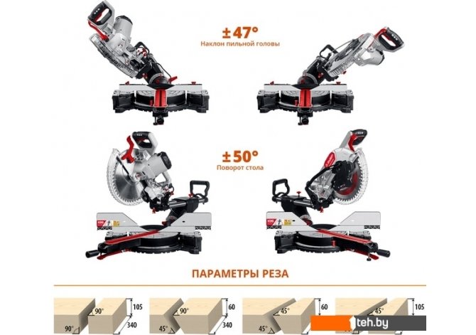 | Ширина пропила | 340 мм (235мм - 45°) |