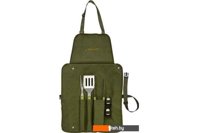 | Состав набора | - сумка-фартук;- вилка;- лопатка; - щипцы;- солонка;- перечница. |