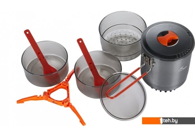 | Состав набора | 2 контейнера, 2 силиконовые вилки, котелок, теплообменная система, крышка, подставка |