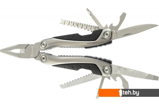 | Информация | Функции: Длинногубцы Захват для удерживания полукруглых предметов Кусачки Нож Две открывалки (для бутылок и банок) Крестовая отвертка Приспособление для чистки рыбы Приспособление для удаления крючка Линейка Пилка для ногтей двусторонняя Пила Три плоские отвертки (большая, средняя, малая) |