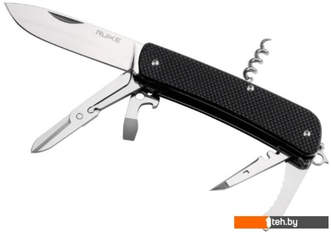 | Информация | Модель Ruike L31 относится к категории многофункциональных складных ножей. Основным инструментом является именно нож с гладкой заточкой, который имеет длину 85 мм и толщину 3 мм. Форма его лезвия – это drop-point. На лезвии сделана небольшая насечка, которая позволяет открывать клинок, поддев его ногтем. Замка в дано модели нет, но лезвие все равно фиксируется в открытом положении за счет механизма Slip joint, действие которого основано на использовании силы трения. Лезвие ножа гладко отполировано до зеркального блеска и выглядит очень аккуратно. Материалом для самого ножа и всех других инструментов является сталь 12С27. Она производится в Швеции и во всем мире признана как один из лучших сплавов для производства ножей. Такую славу этот тип стали заслужил благодаря отличной стойкости к ржавлению, а также способности надолго оставаться хорошо заточенным. Металл проходит закалку при экстремально низких температурах, в результате чего его твердость достигает 59 HRC. Это позволяет режущей кромке быть очень стойкой к деформациям даже при работе с большой нагрузкой и частом использовании ножа. Помимо режущего клинка, с той же стороны рукоятки можно достать миниатюрные ножницы или инструмент, совмещающий в себе сразу несколько функций. Это открывалка для бутылок, прямая отвертка шириною 6,5 мм, два инструмента для зачистки от изоляции любых проводов. С противоположной стороны рукоятки достается шило-развертка с отверстием для нитки, которое сделано заточенным с одной стороны. Этот же инструмент может использоваться как маленький гаечный ключ. Отдельно сделан инструмент для перерезания строп, на конце которого имеется узкая (3 мм) прямая отвертка. Непосредственно в торец рукоятки встроен стеклобой и небольшое стальное кольцо для темляка. Здесь же размещены щипцы, которые можно полностью достать из рукоятки и использовать как совершенно самостоятельный инструмент. А на спинке рукоятки имеется штопор. Цвет ручки ножа покупатель выбирает на свое усмотрение из трех возможных вариантов: черного, коричневого и зеленого. В любом случае, материалом для накладок служит G10 – современная разновидность стеклопластика с невероятно высокой прочностью. |