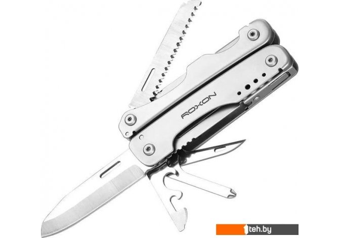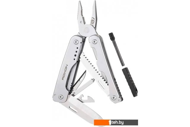 | Информация | Мультитул Roxon Flash S803 состоит из 16 инструментов. Такого набора достаточно для применения в наиболее типичных бытовых задачах. Мультиинструмент удобен в активном отдыхе и туризме, он небольшой, крепкий, будет долго служить владельцу. Является приспособлением EDC-ношения. Вес мультитула составляет 236 грамм. В модели объединены: острогубцы; обычные плоскогубцы; кусачки для мягкого материала; кусачки для твердых материалов; нож; шило; развёртка; отвёртка; открывашка; монтировка для банок; плоская отвёртка; пила; кремневый камень; свисток; линейка. |